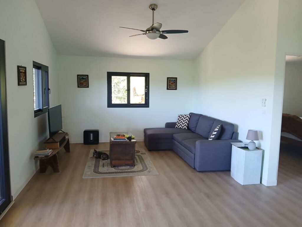 Built in 2024, this fully self-sufficient property offers 150 m² of construction on a private 9,675 m² lot. The home is designed for independent living, featuring a private well, solar power system, rainwater collection, and a 7,000-liter water storage tank. This setup ensures reliable water and electricity without dependence on public utilities, an important advantage in an area where service interruptions are not uncommon.