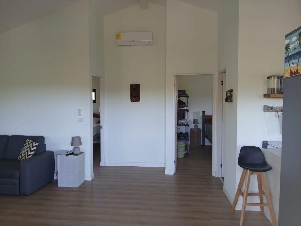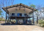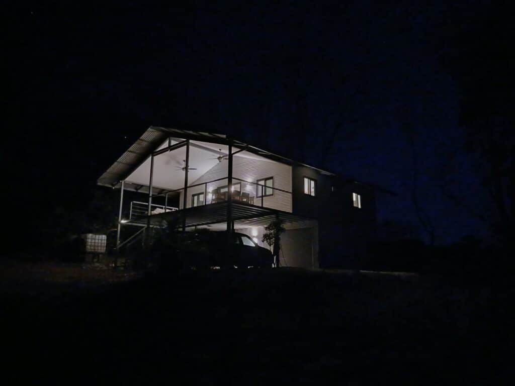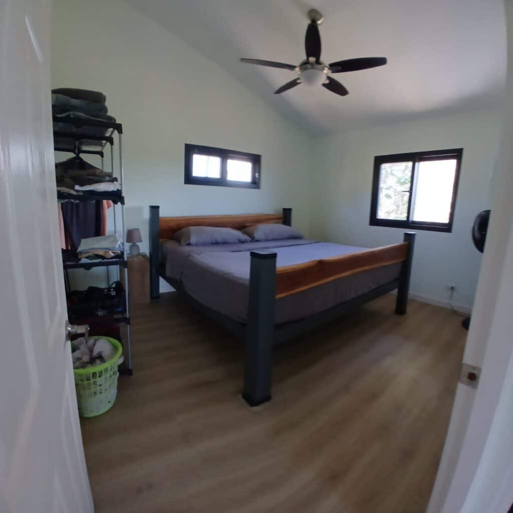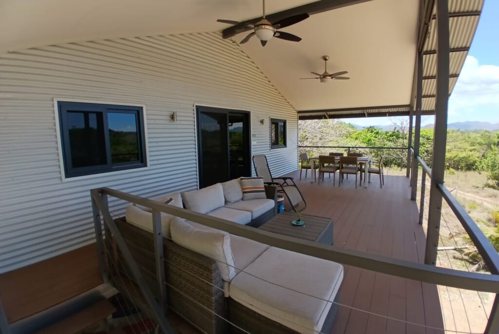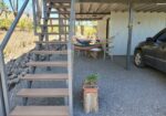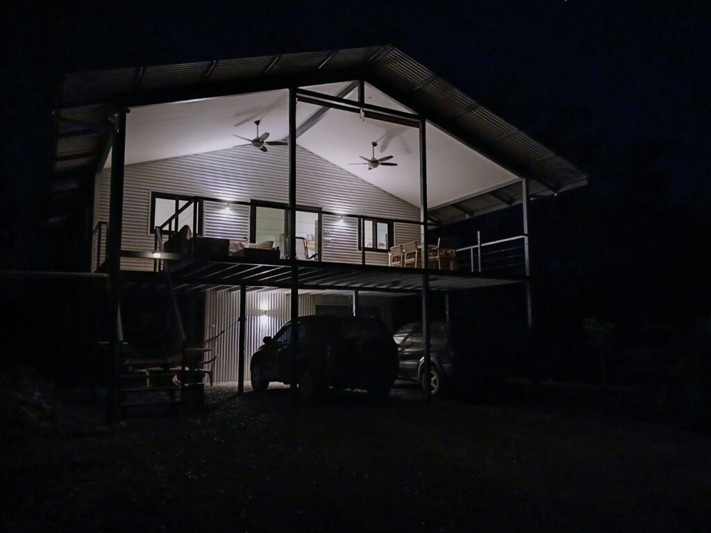 Below, a versatile workshop space offers practical functionality, complemented by covered parking for two vehicles. The home’s metal construction provides durability and ease of maintenance, ideally suited to the tropical environment.