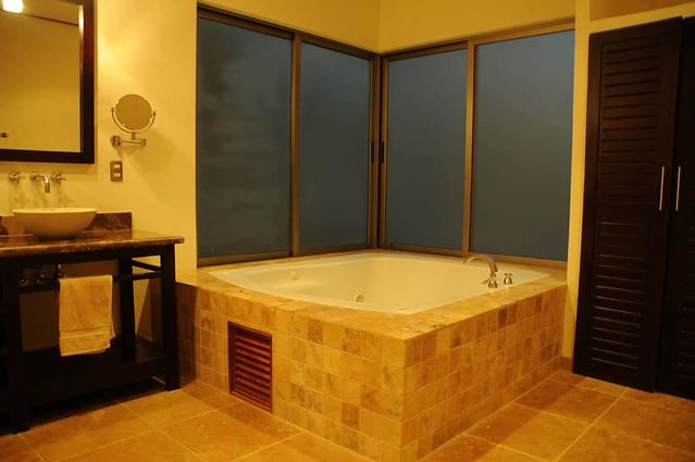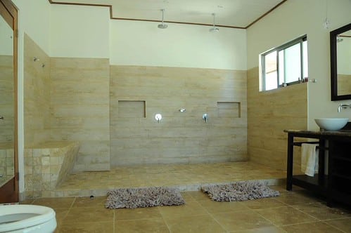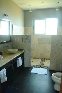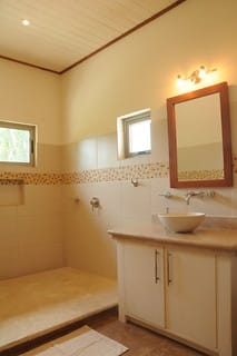Every one of the six ocean-view bedrooms has air conditioning, a private balcony, and fine finishes throughout. The master suite is particularly spacious, with a king-size bed, polished wooden floors, and an oversized bathroom featuring dual walk-in showers, double sinks, a two-person jacuzzi, and a generous walk-in closet.