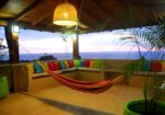 Outside, the infinity pool appears to merge with the horizon, surrounded by lush gardens and shaded lounging areas. There’s also a BBQ area, a jacuzzi for six, and a private garden with a children’s swing. Upstairs, an open-air rancho-style lounge offers hammocks and seating — the perfect place to unwind at sunset or under a canopy of stars.