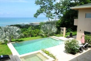 Perched on a gentle hillside in Mal País, this 6-bedroom, 5.5-bath ocean-view residence was designed for those who value space, comfort, and understated luxury. The 5,400 sq. ft. home combines elegant design with tropical living, offering panoramic views of the Pacific from nearly every room.