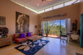 The home is unique in that it has three exterior decks that overlook two reserves, Piedra Colorada and Playa Grande. There you can view a lot of wildlife and enjoy bird watching. Since the decks face the east, the sunrises here are phenomenal. The top deck gives you a 120-degree ocean view as well as seeing the mountains and Jaco across the Gulf of Nicoya.