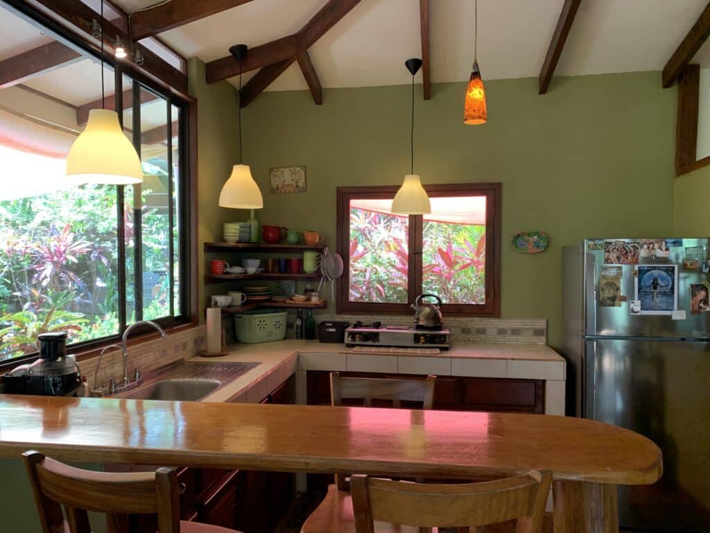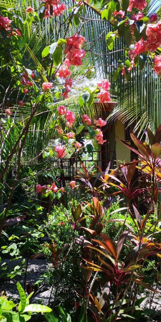 One of the incredible blessings of La Paz is the abundance of alkaline water. The well never rests, producing a plentitude of life-giving water which supports an abundance of fruits and tropical greens planted on the property including: Quadrato bananas, mangos, water apples, sweet coconuts, lemons, and an abundance of delicious medicinal Turmeric and Sweet leaf Katuk greens. The Asian Jack Fruit (from the family of bread fruit and an amazing survival food) also grows on the property. Not only will your body find nourishment and thrive here, but the extensive ornamental gardens are a feast for the soul.